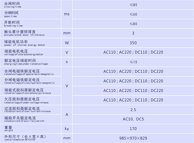 主要电气性能技术参数
