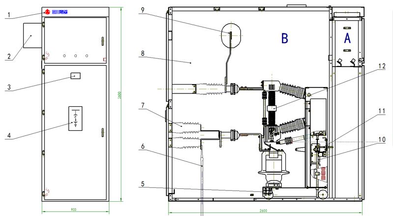 9 主母线      10 推进机构      11 连锁定位机构      12 真空断路器